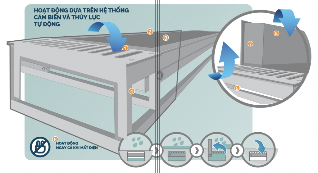 Hệ thống cửa chống ngập nước tự động Chống ngập an toàn cho tầng hầm, gara ngầm, nhà kho và các công trình khác khi bị nước ngập đe dọa. Nhờ có công nghệ tiên tiến, hệ thống sẽ tự động kích hoạt, không cần năng lượng ngoài cũng như sự can thiệp của con người. Chúng tôi đảm bảo chống ngập an toàn!